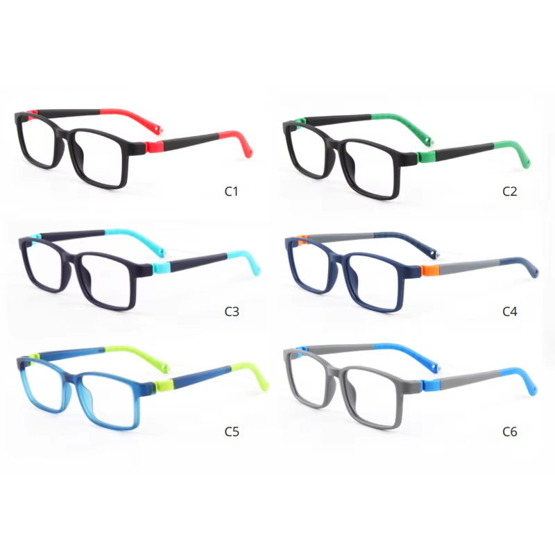 Óculos de grau infantis personalizados feitos de TR90 e borracha, apresentando um design destacável com Gancho de orelha antiderrapante de silicone e Almofada de nariz de silicone macio para conforto e segurança. Certificado pela CE, garantindo a conformidade com as normas de segurança da UE, o que proporciona acesso ao mercado. As armações são anti-bloqueio de luz azul, elegantes e adequadas para meninos e meninas.